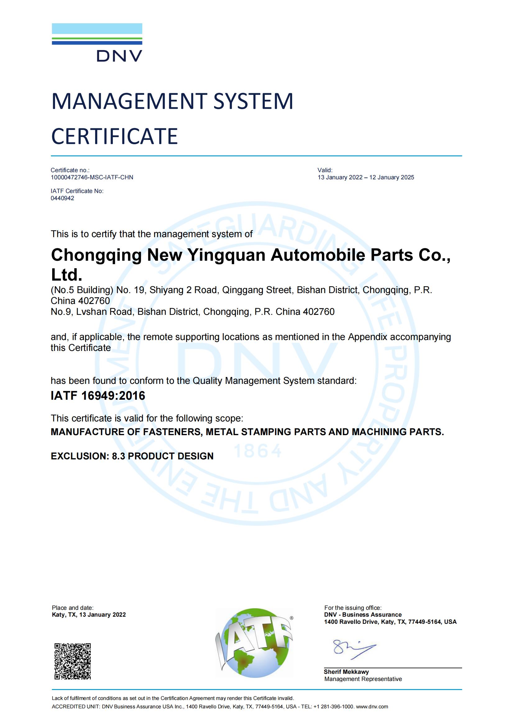 IATF 16949:2016 認證企業
